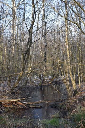 Zwischen Weg 86 und Weg 90 soll der Wanderweg in Surheide an zwei Stellen ausgebessert werden. Der ursprüngliche Wanderweg liegt unter dem "Wasserlauf". An dieser Stelle soll das Matschfeld wieder in einen Weg verwandelt werden. Foto: Rabbel