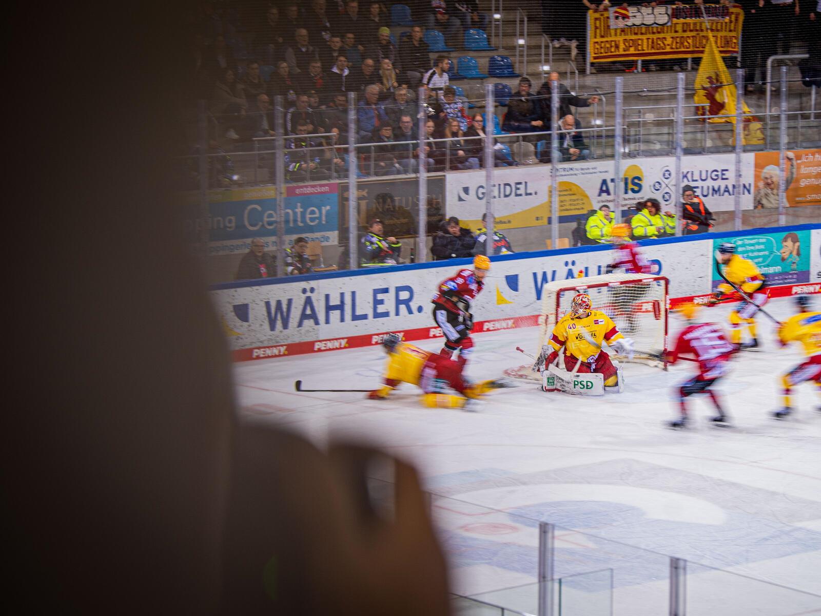 Doch die Freude währte gerade einmal 65 Sekunden, da stocherten die Düsseldorfer die Scheibe erneut über die Linie. Exakt sechs Minuten vor der Schlusssirene zeichnete Philip Gogulla für den Ausgleich verantwortlich.